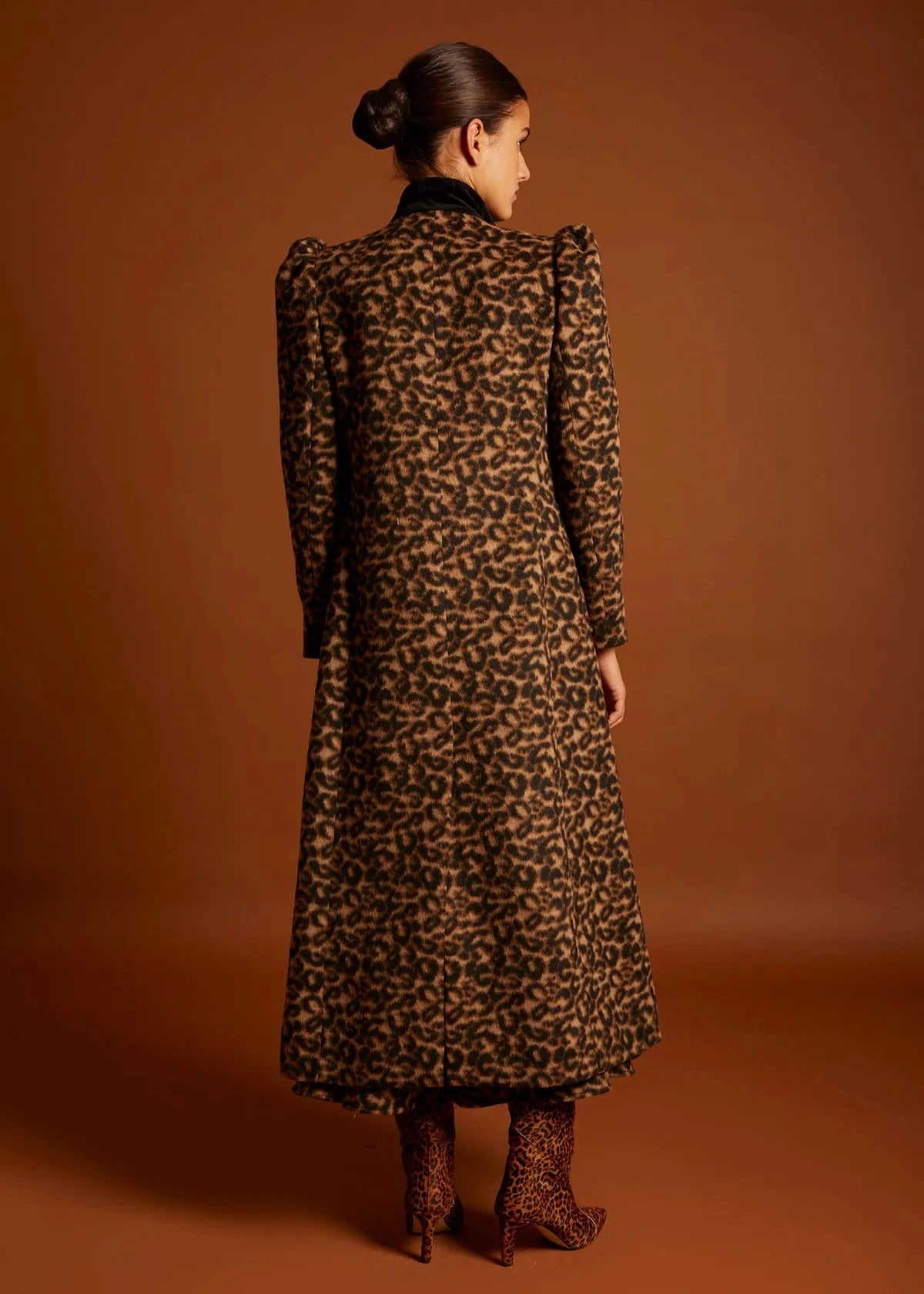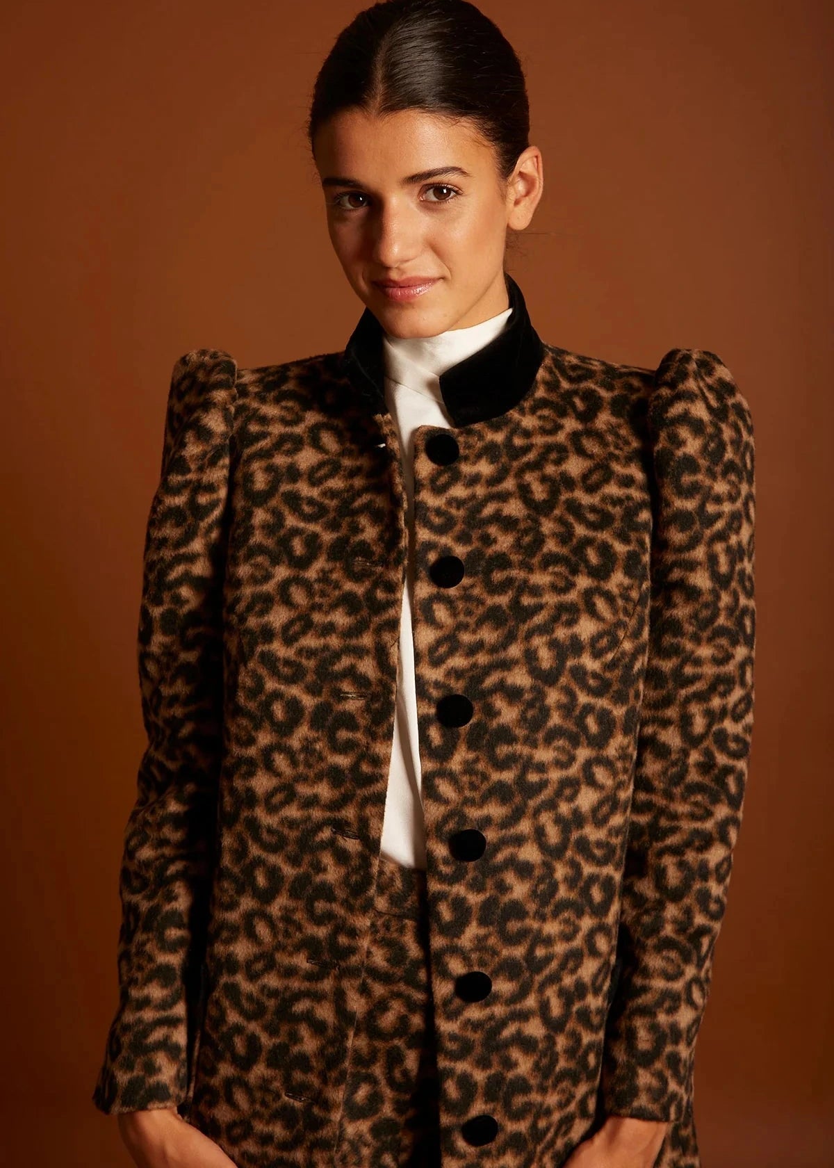 El estampado animal print le aporta personalidad y versatilidad, convirtiéndolo en el abrigo perfecto tanto para invitadas de eventos especiales como para looks de día a día con un toque de tendencia.