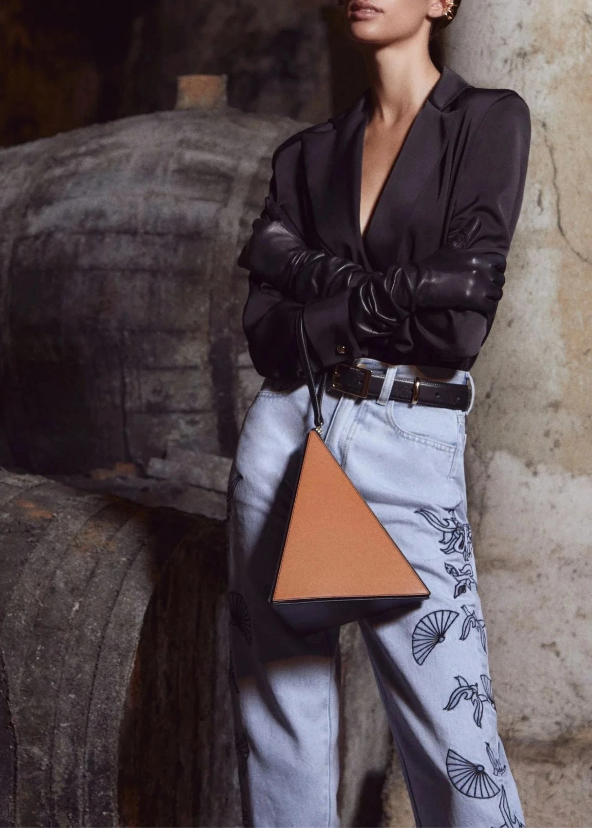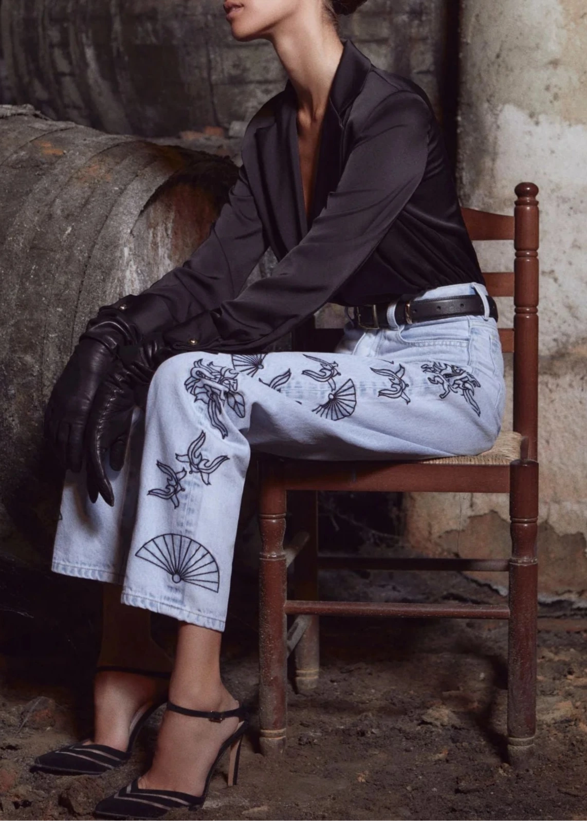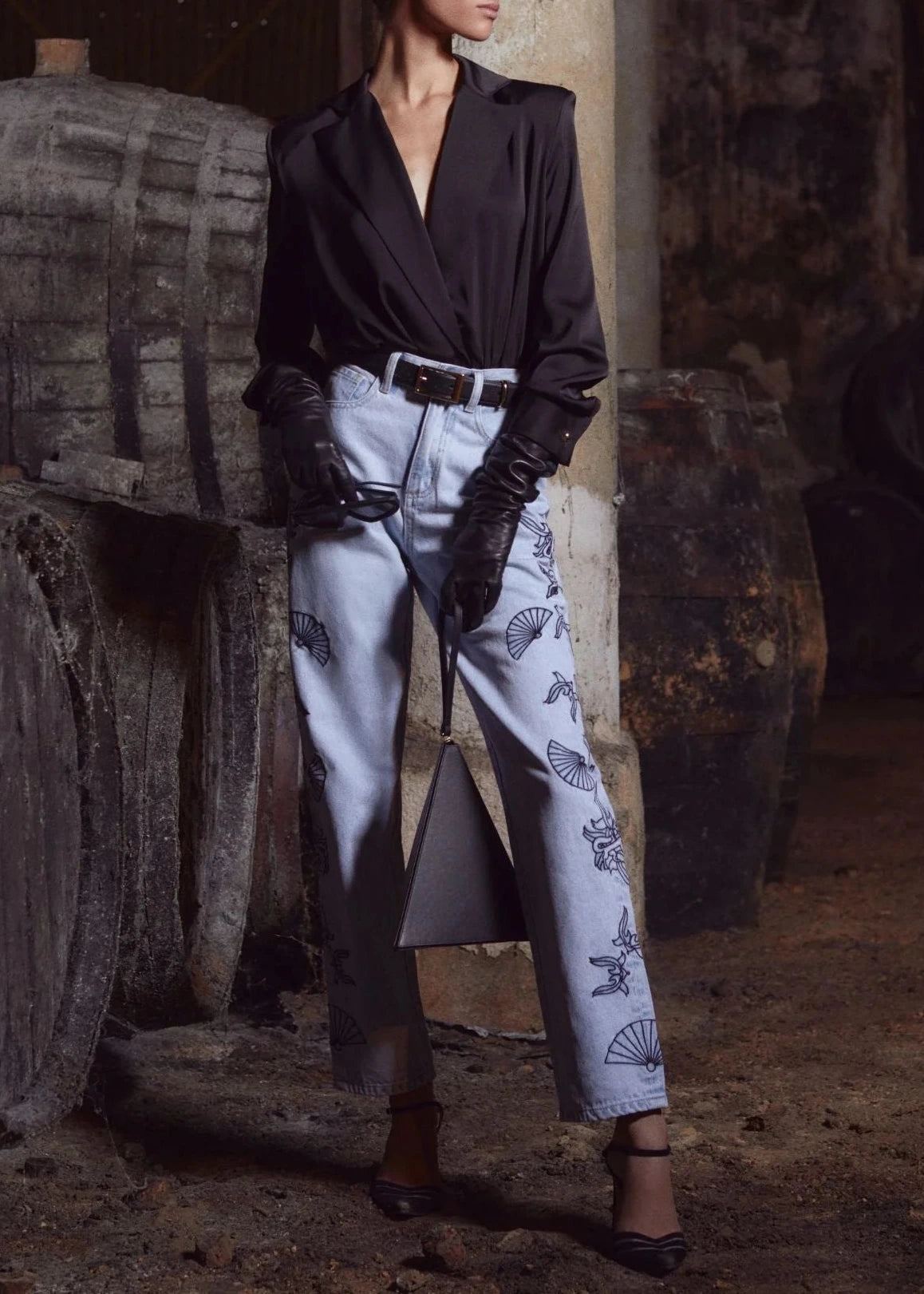 Body con escote de pico y solapas en color negro.