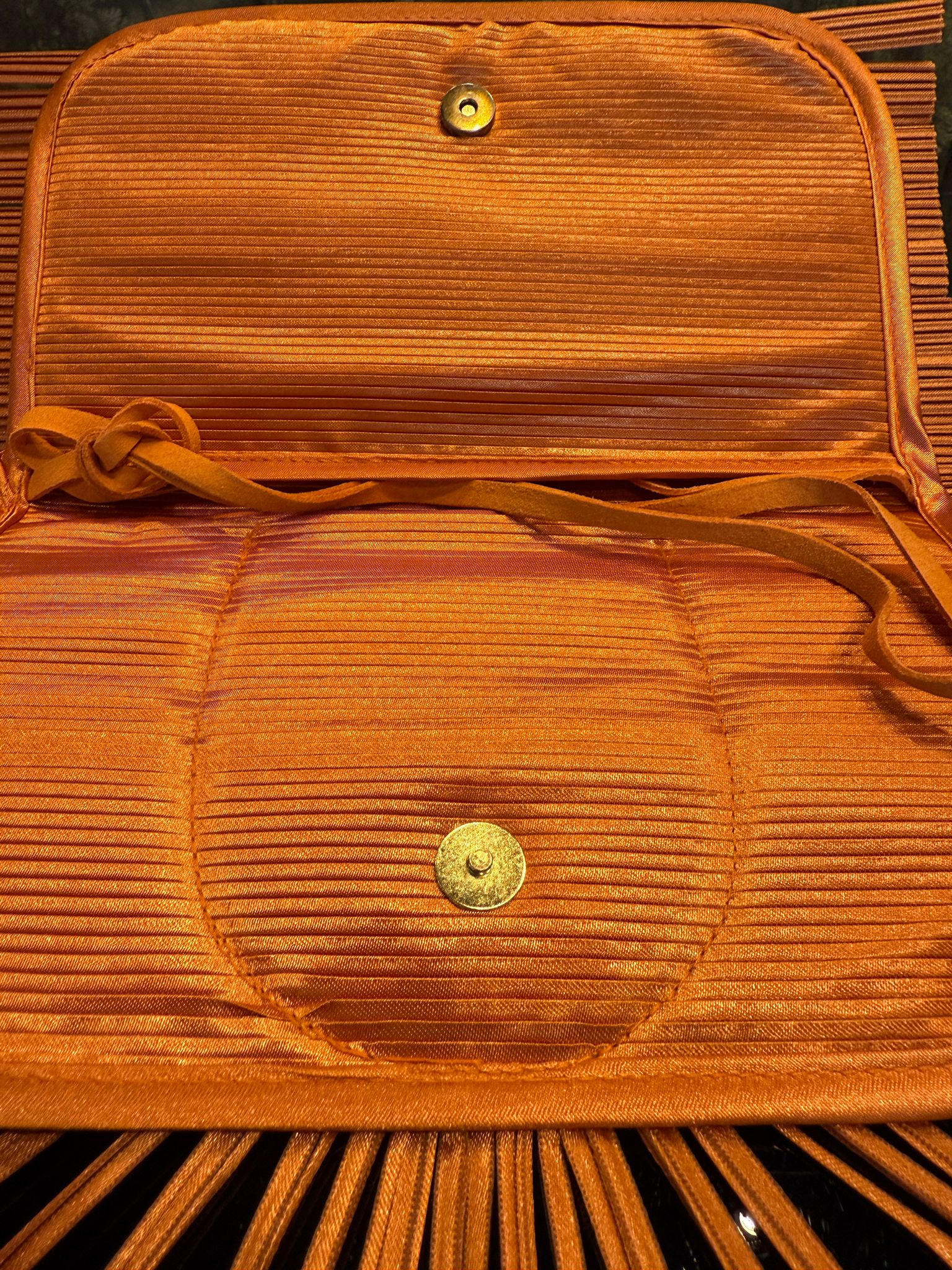 Bolso de mano modelo Origami en color naranja-teja con cinta de ante.