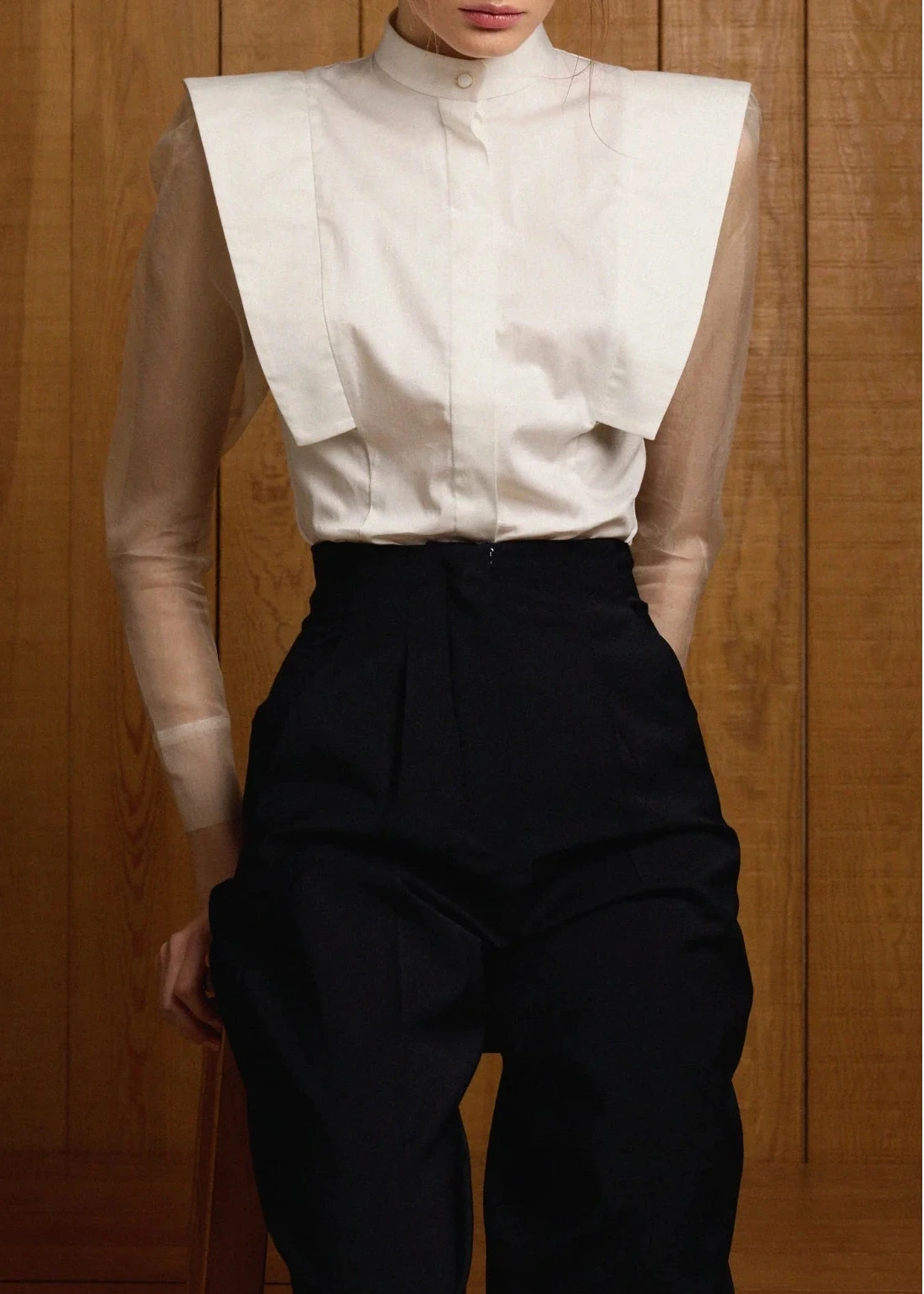 Camisa Anna en color blanco con mangas de organza de seda.