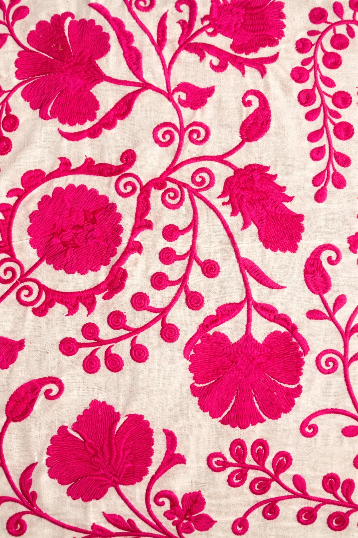 Camisa/top Bro en tejido bordado floral en tono fucsia y detalles de vivo negro en el bajo.