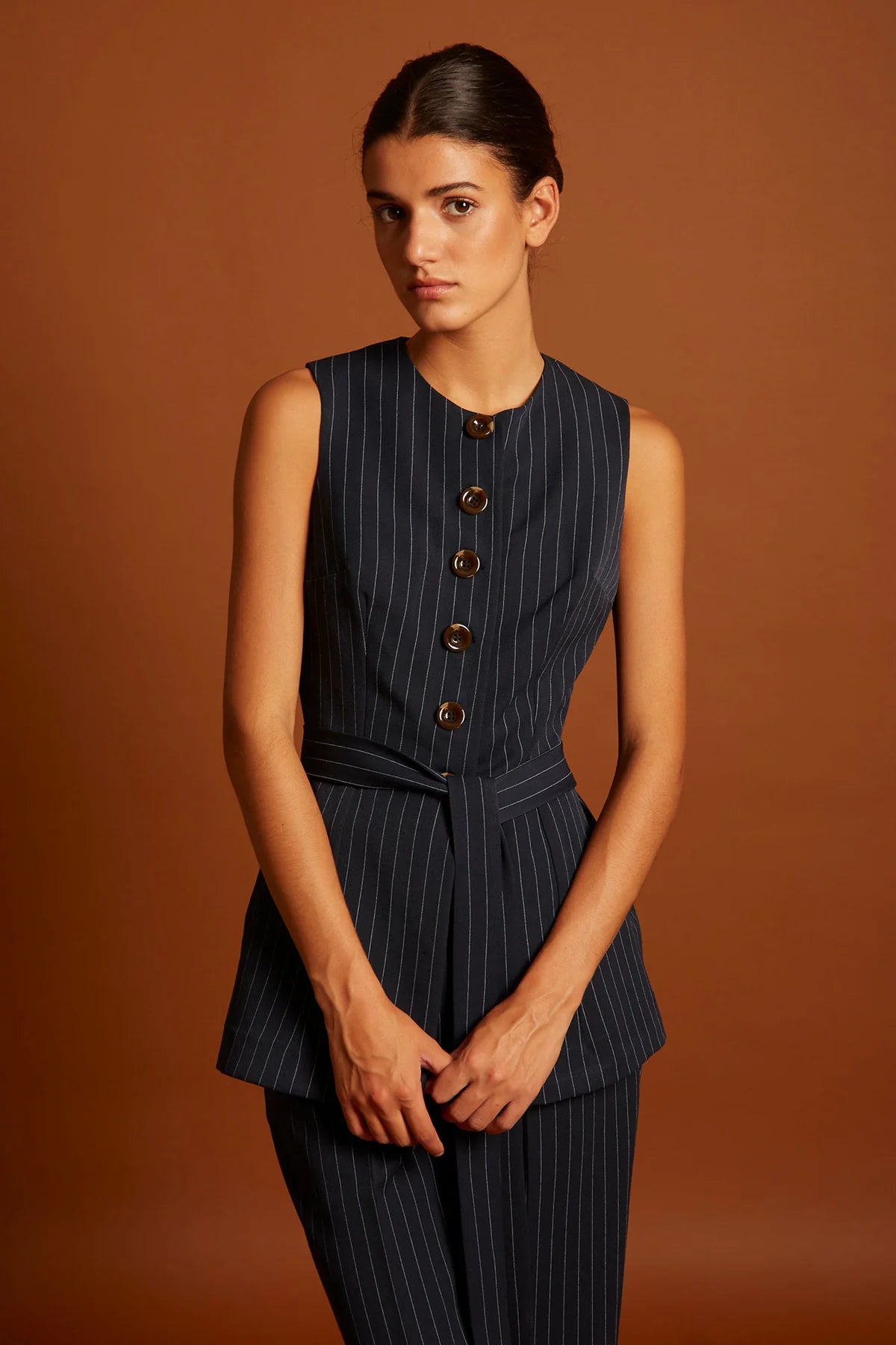 Chaleco Ghala, una prenda sofisticada y versátil que forma parte del exclusivo conjunto Ghala.