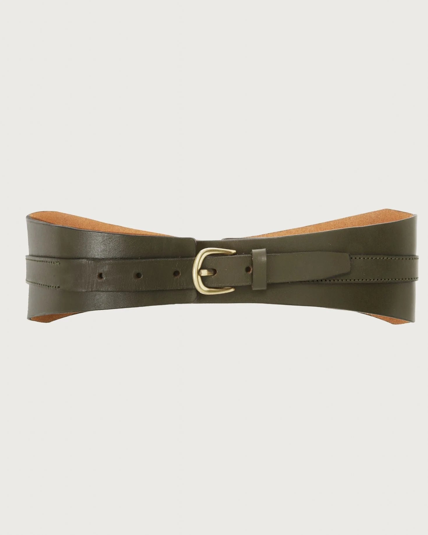 Cinturón Juliana en color verde musgo con hebilla en color dorado.