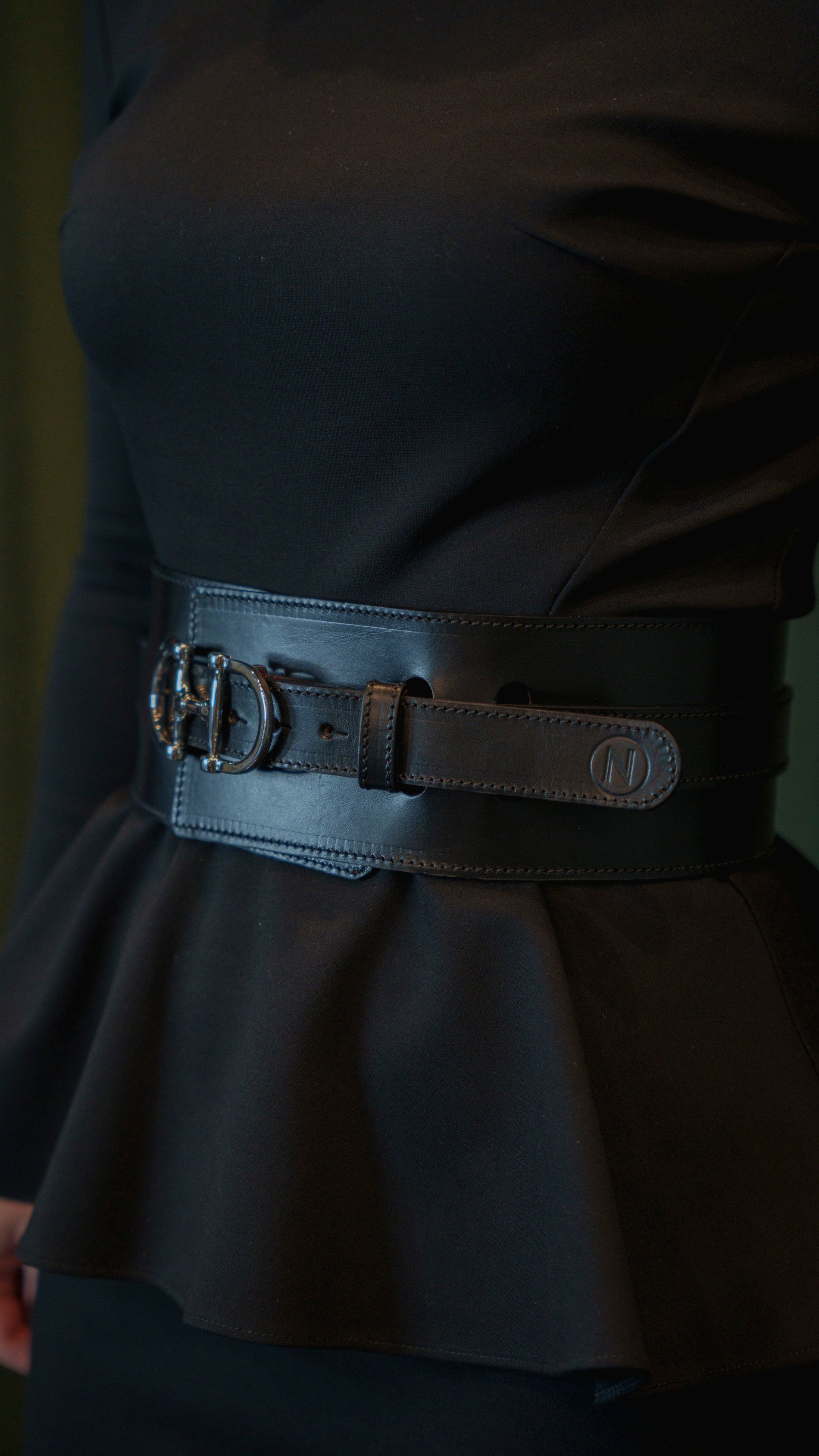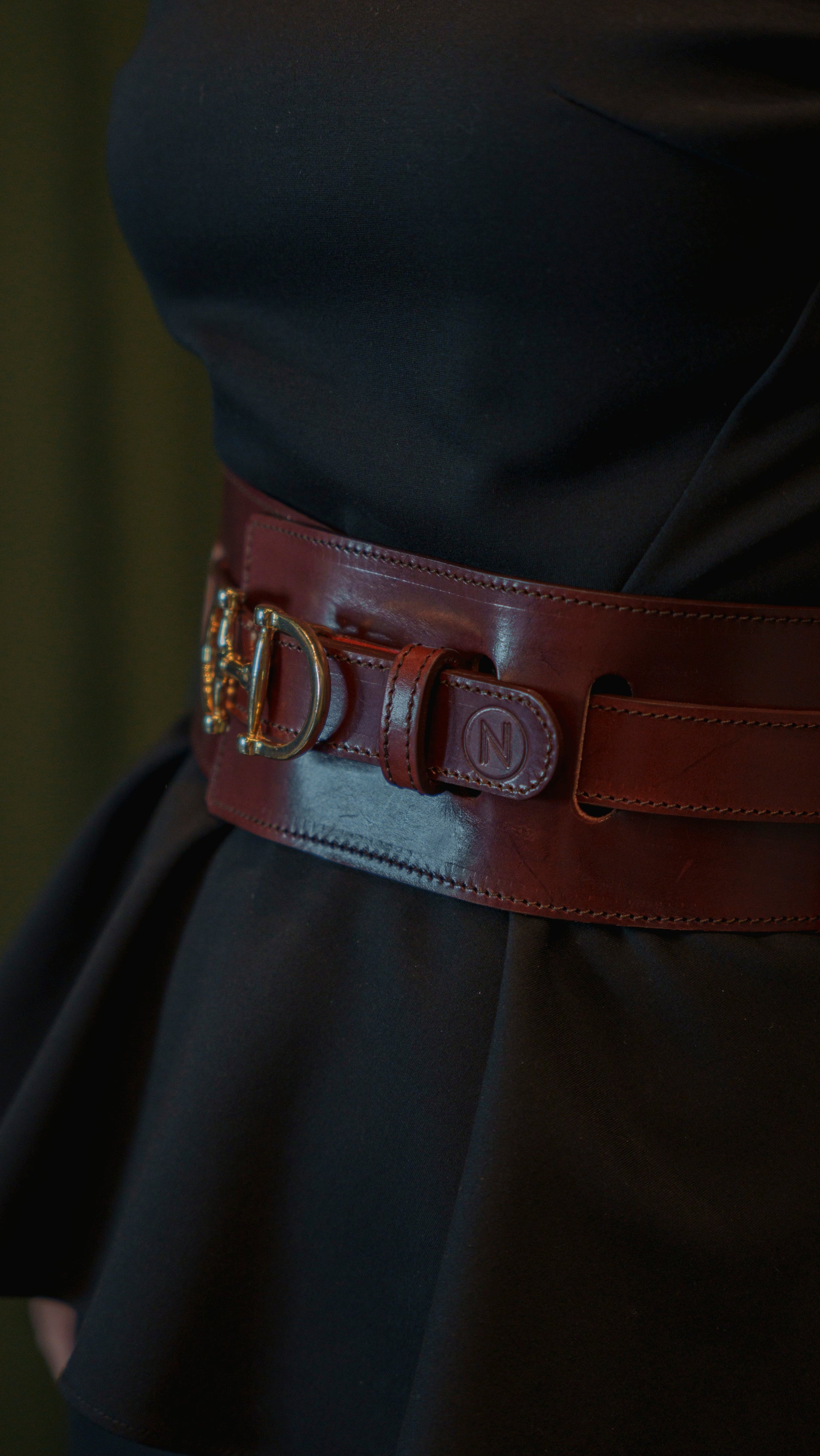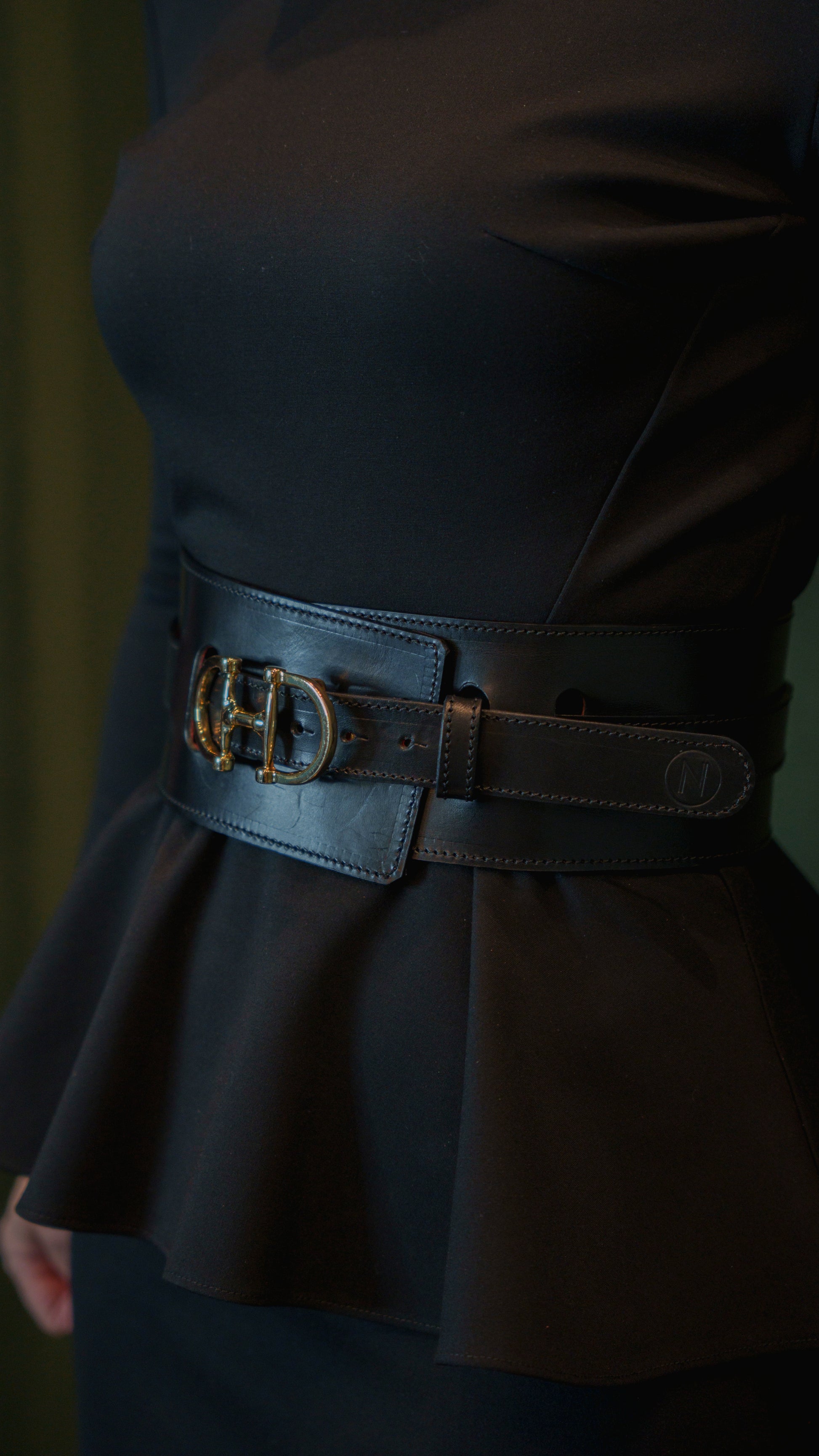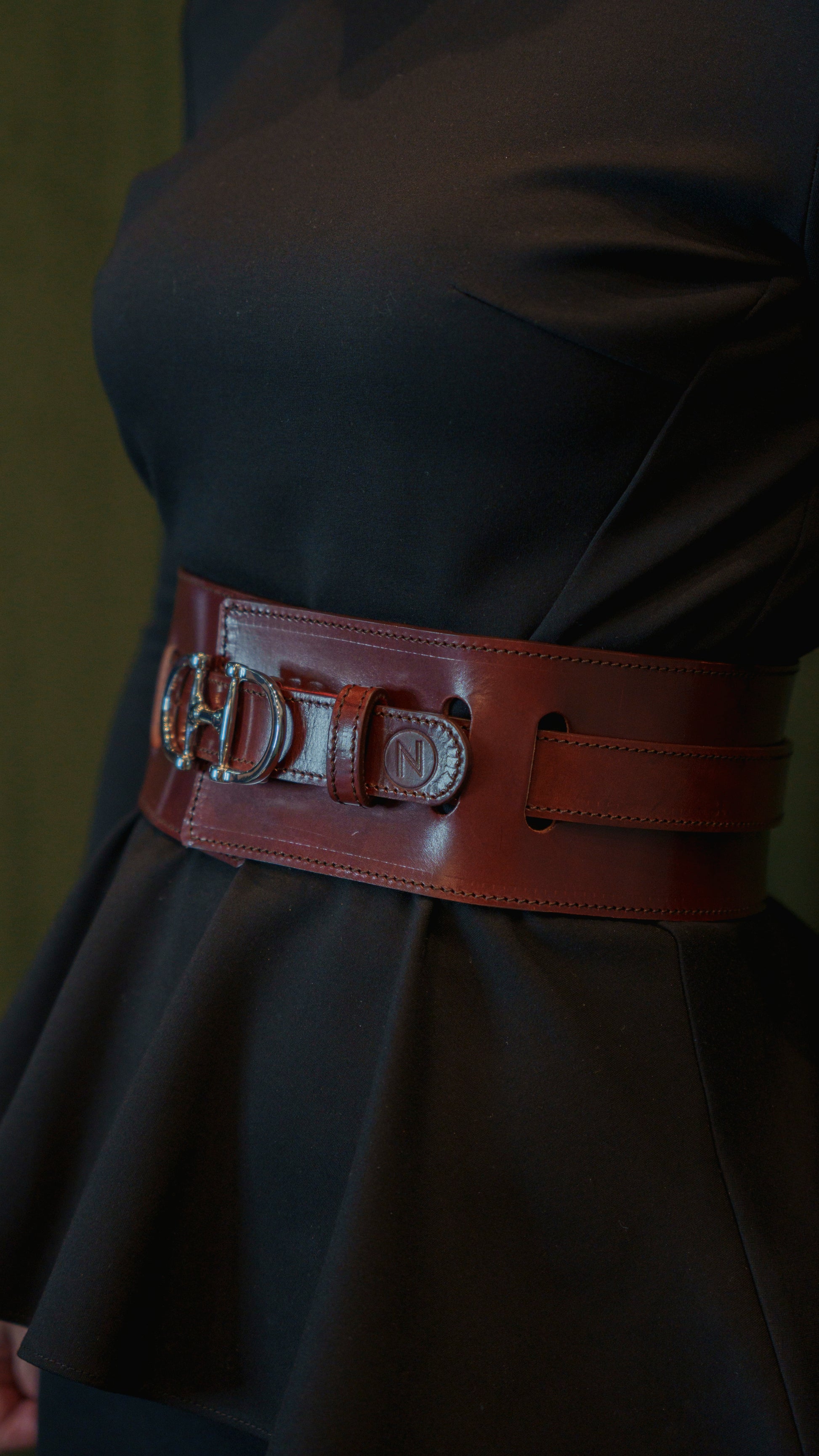 Cinturón fajín de piel en marrón o negro con hebilla dorada o con hebilla plateada.