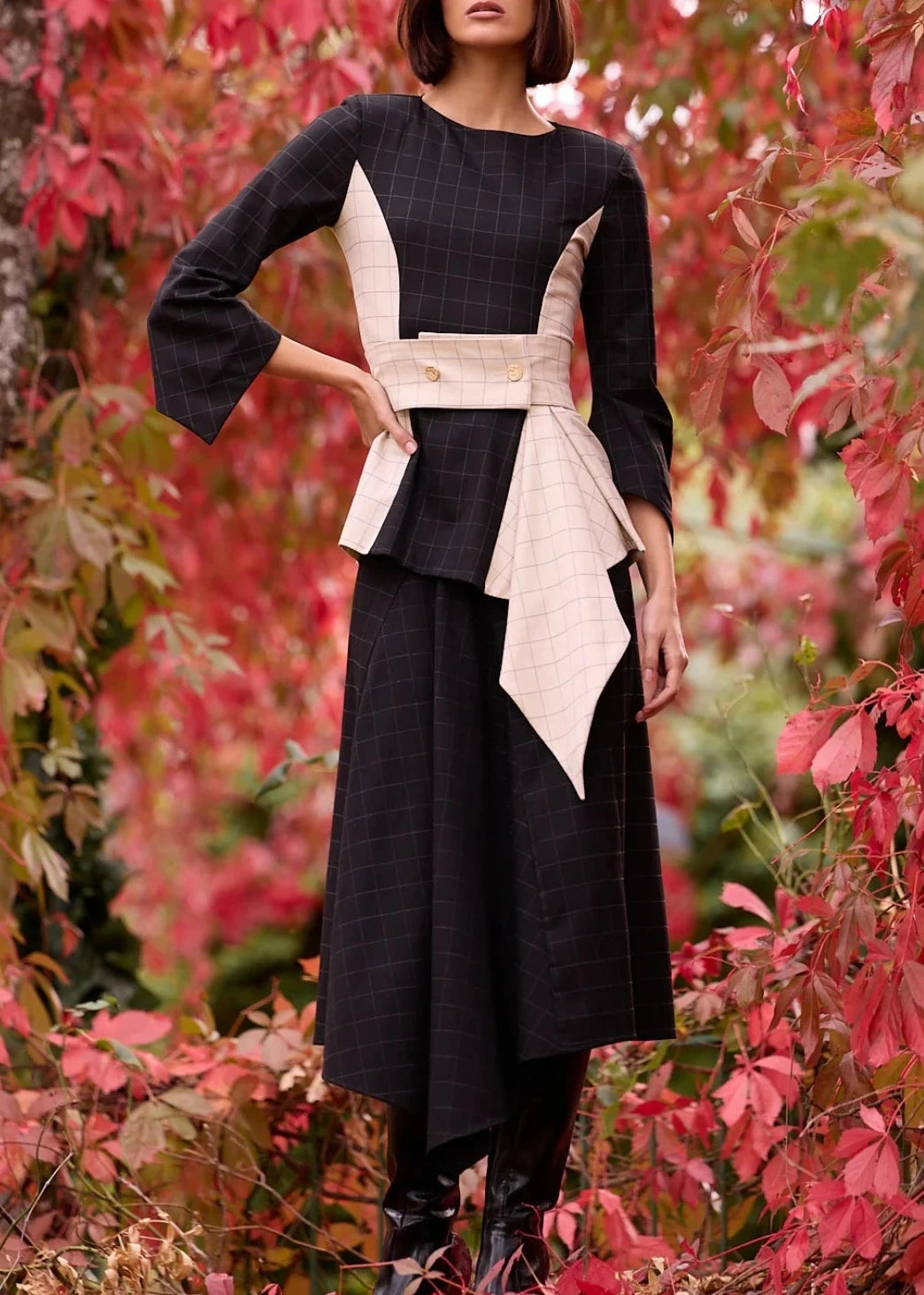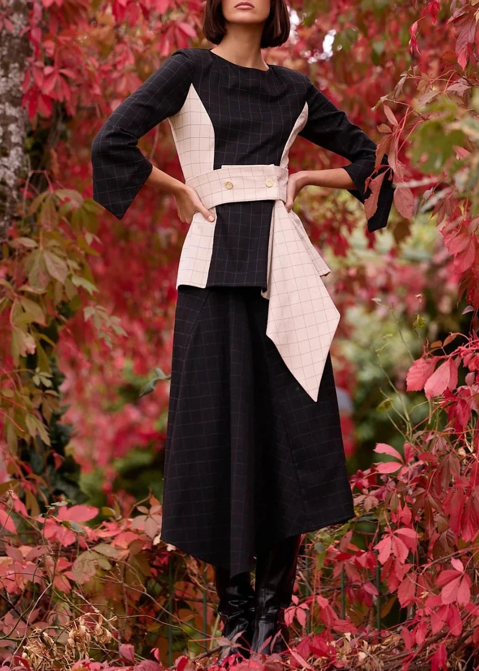 Consigues un total look muy especial con la blusa coral cuadros también disponible en Natalia Gómez.