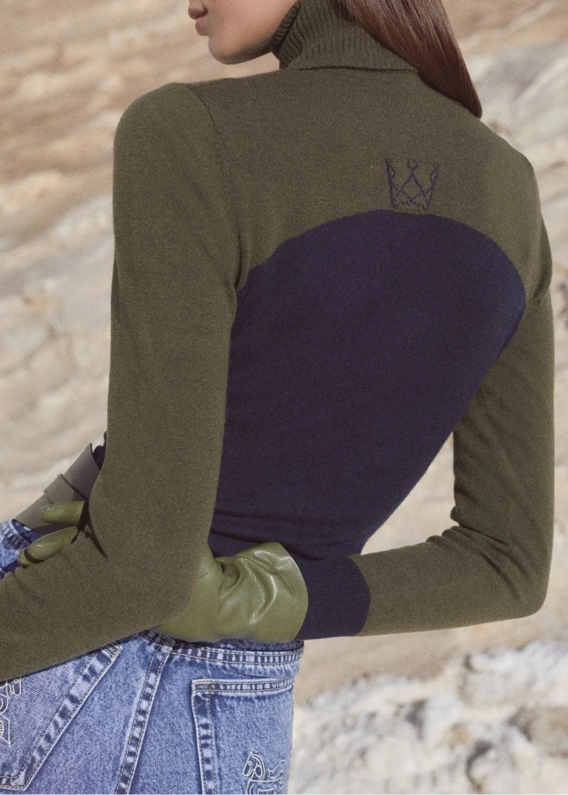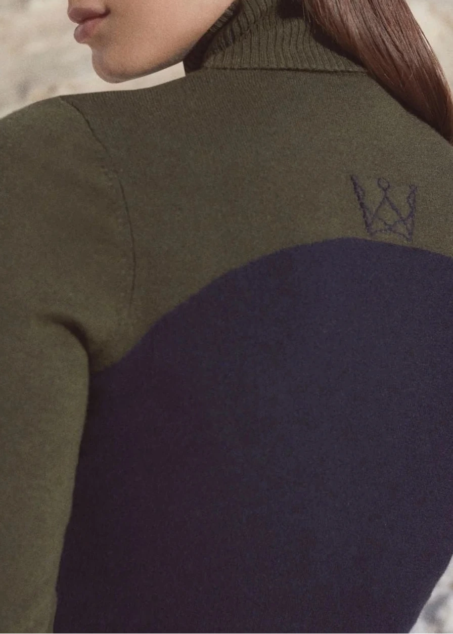 Cuello subido, manga larga y detalle de logo en la parte trasera.