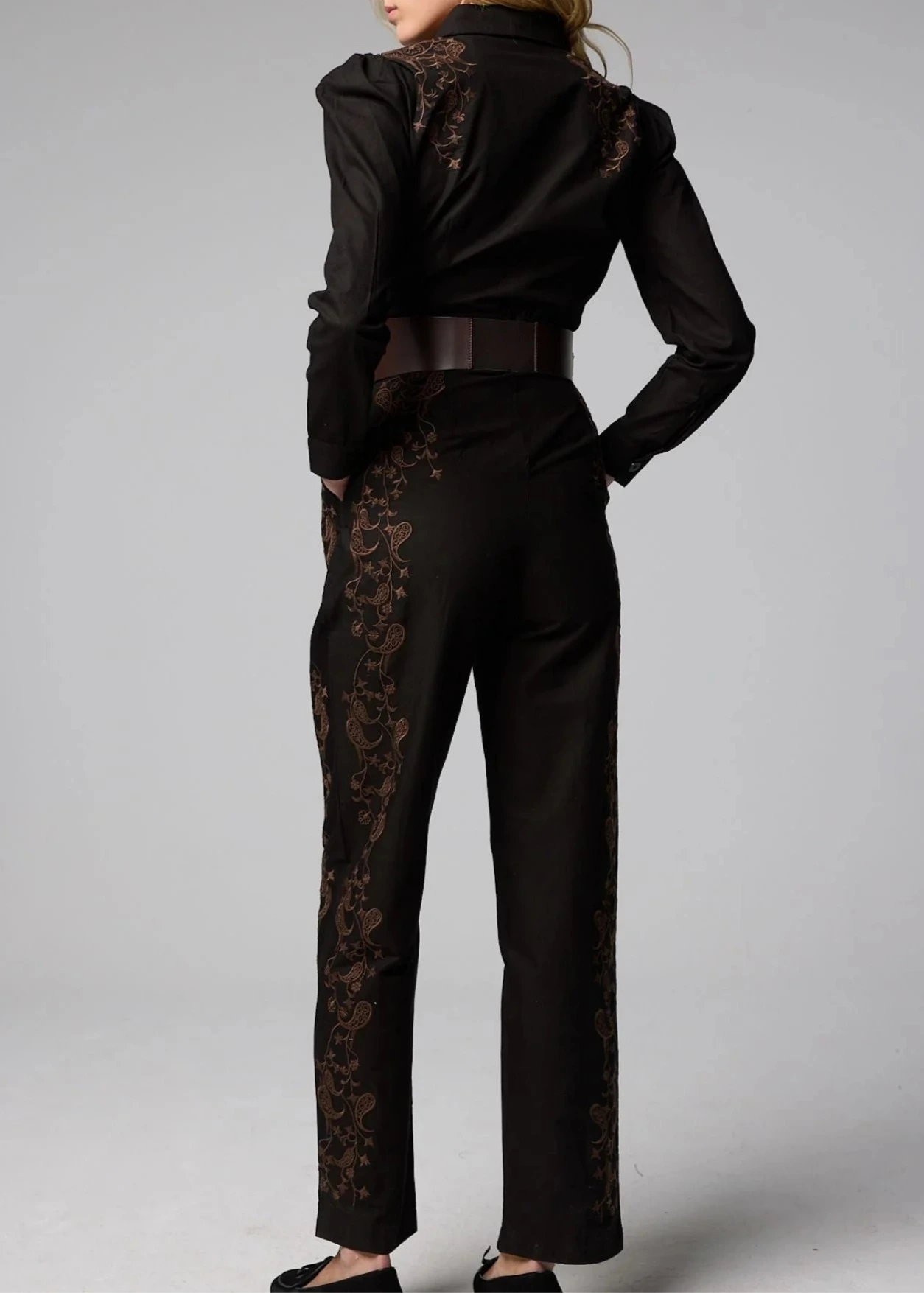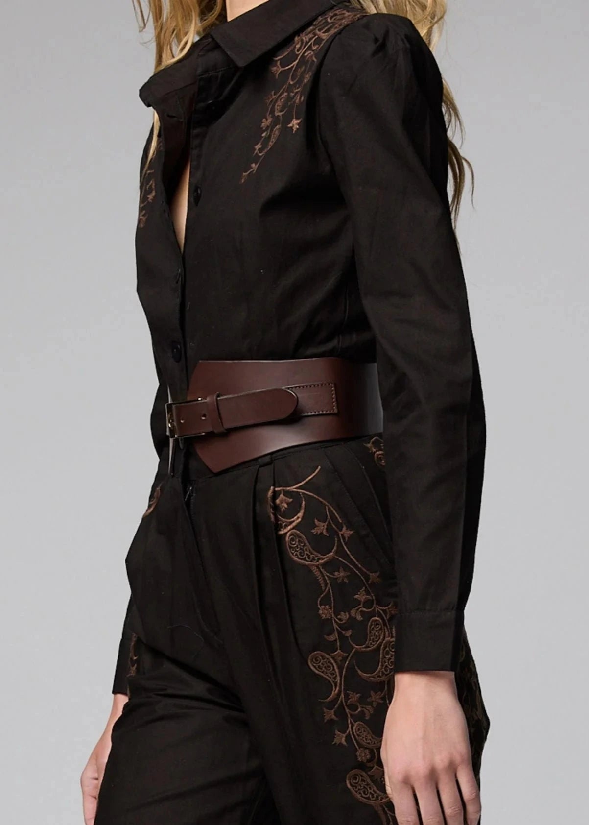 Mono Bare largo de color negro con bordados en color marrón. Una prenda perfecta para un otoño/invierno lleno de estilo.