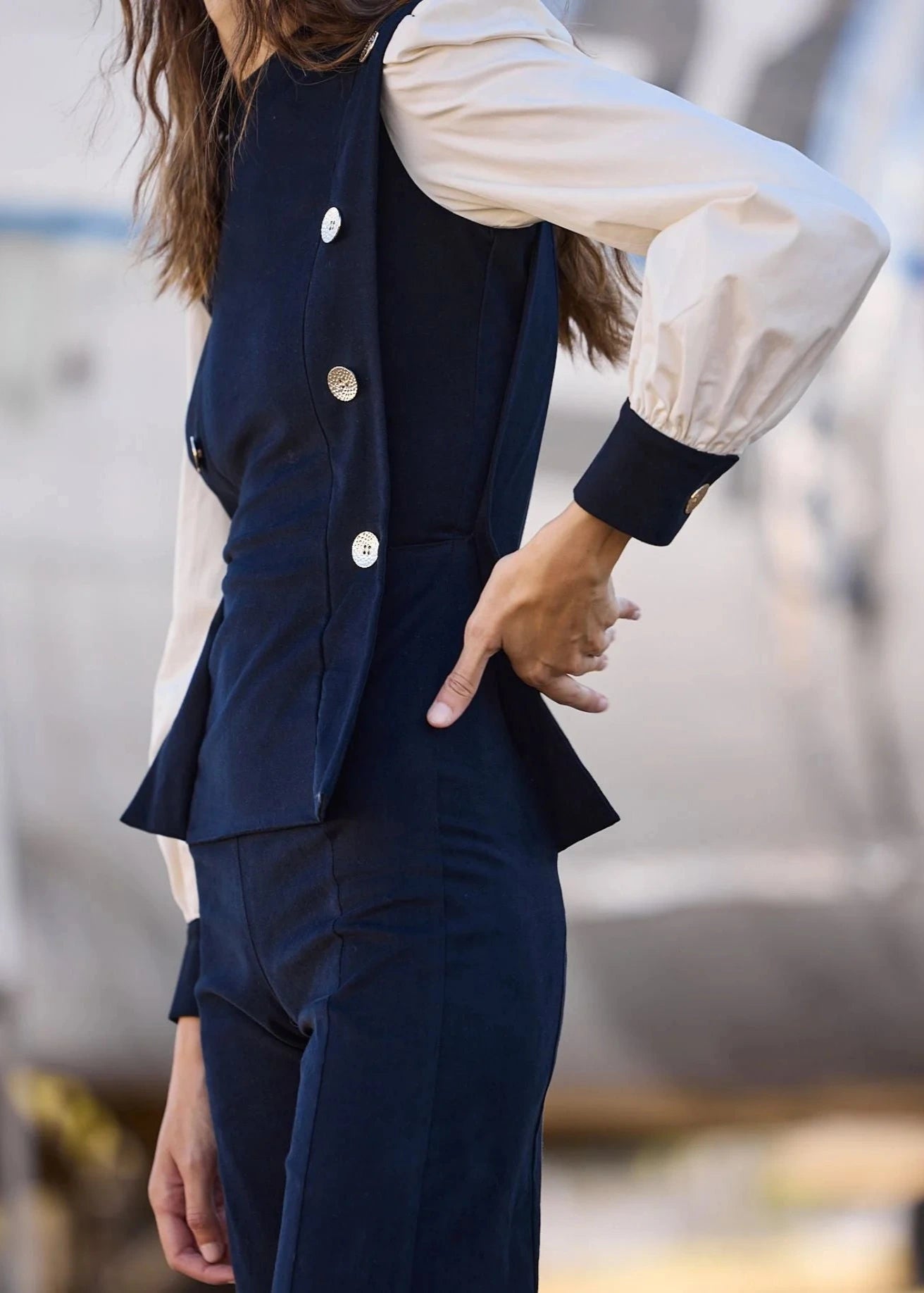Mono Pili entallado con mangas en contraste y puños en color azul marino.