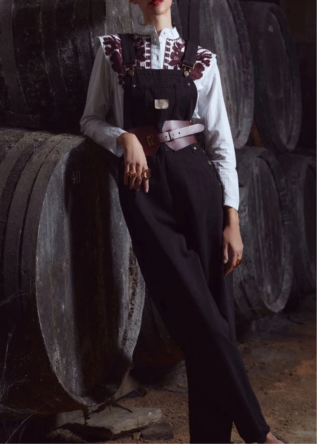 Peto denim negro de tiro medio-alto, corte recto y holgado.