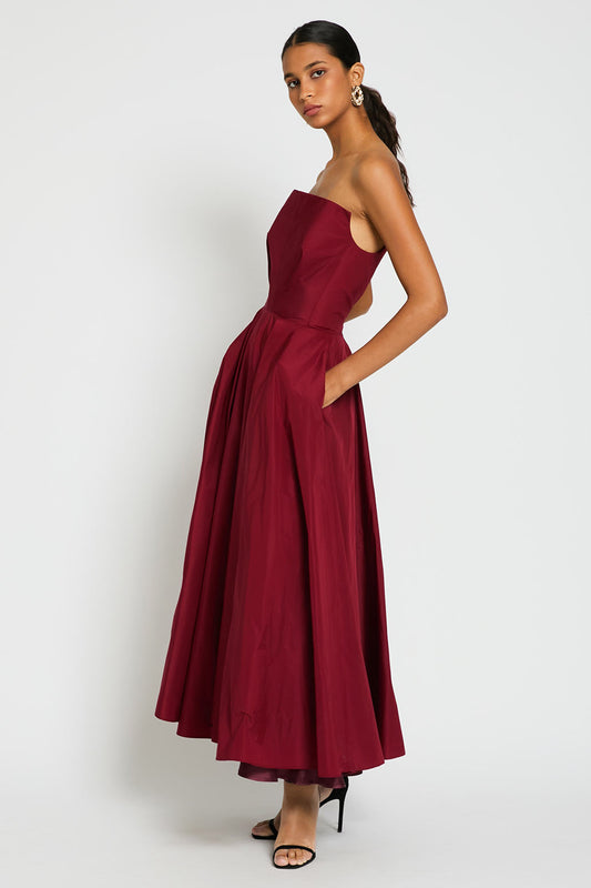 Cuello de pico y tirantes con cierre delantero con botones dorados.