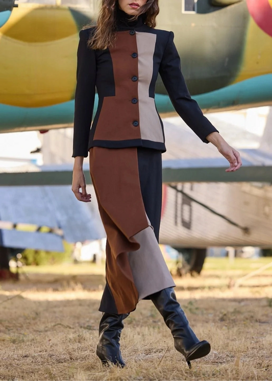 Su diseño de corte midi con falda de vuelo en dos paneles aporta movimiento y dinamismo, mientras que las mangas abullonadas a media manga añaden volumen y un aire romántico.